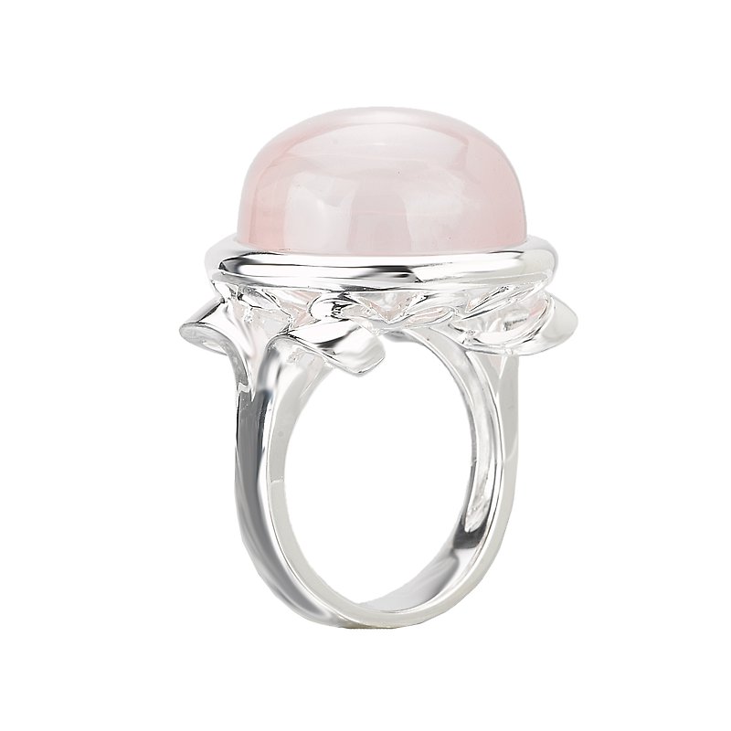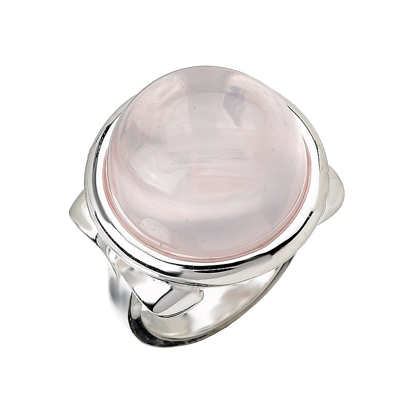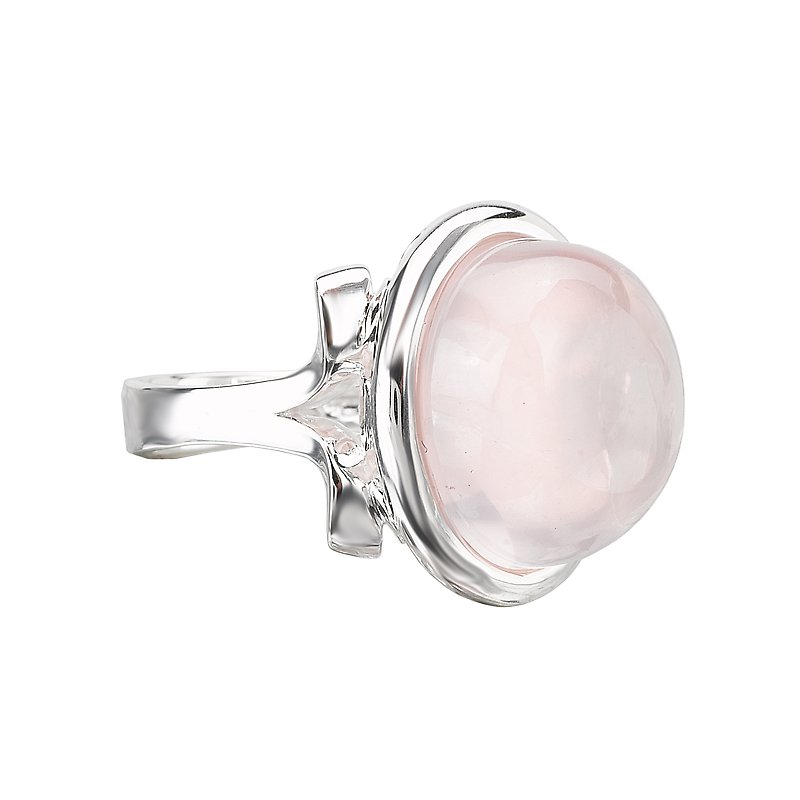 Sterling Silver Ring with a Cabochon Rose Quartz Center. (RQ-21.39 gem total weight)