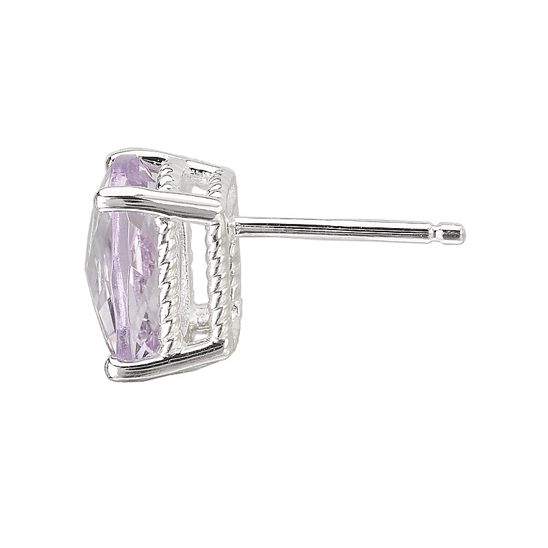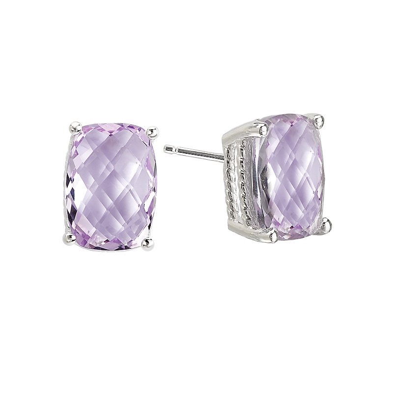 Faceted Cushion Cut Pink Amethyst Earrings In Sterling Silver with a Rope Design. (PQ 5.12 carat total weight) Post
