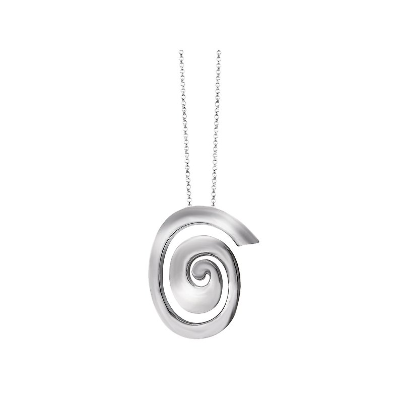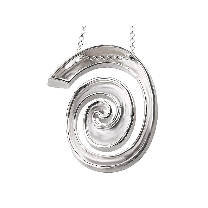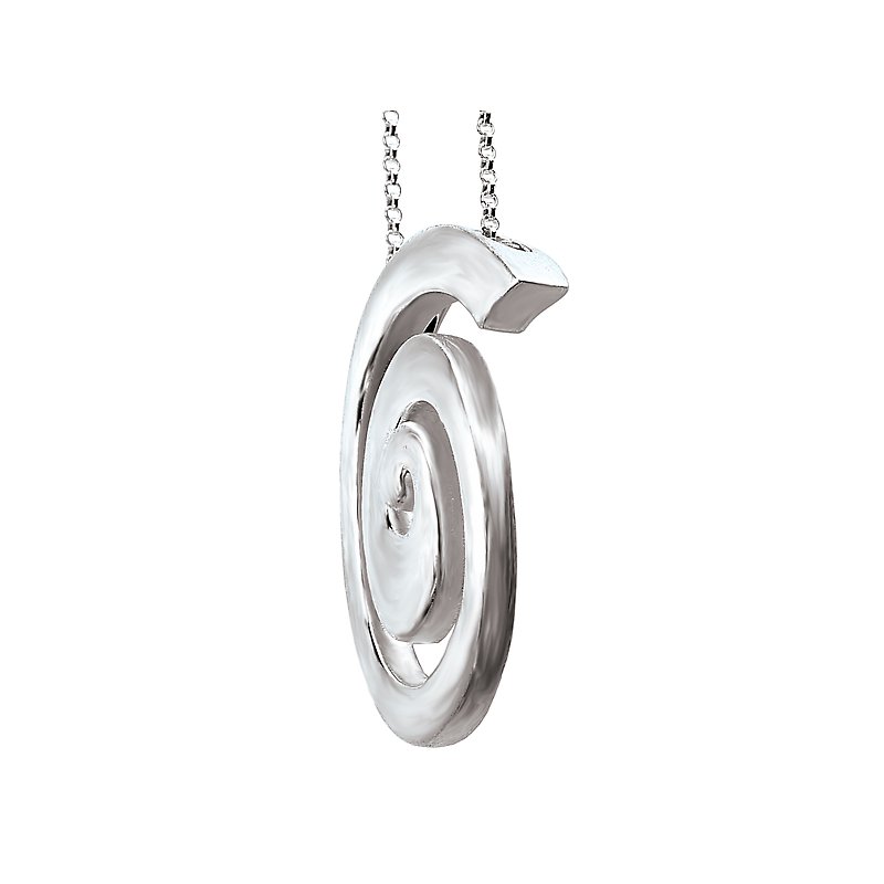 This is a sterling silver swirl design pendant with a high polished finish. This pendant hangs on an 18 necklace.