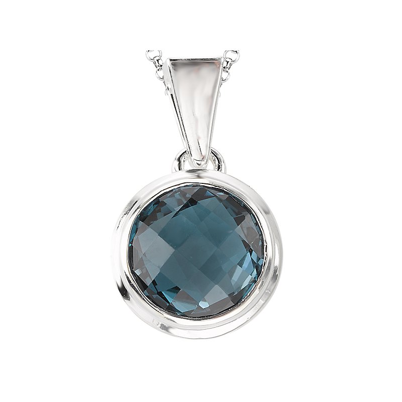 Sterling Silver with Round London Blue Topaz Pendant. Chain shown is sold separately