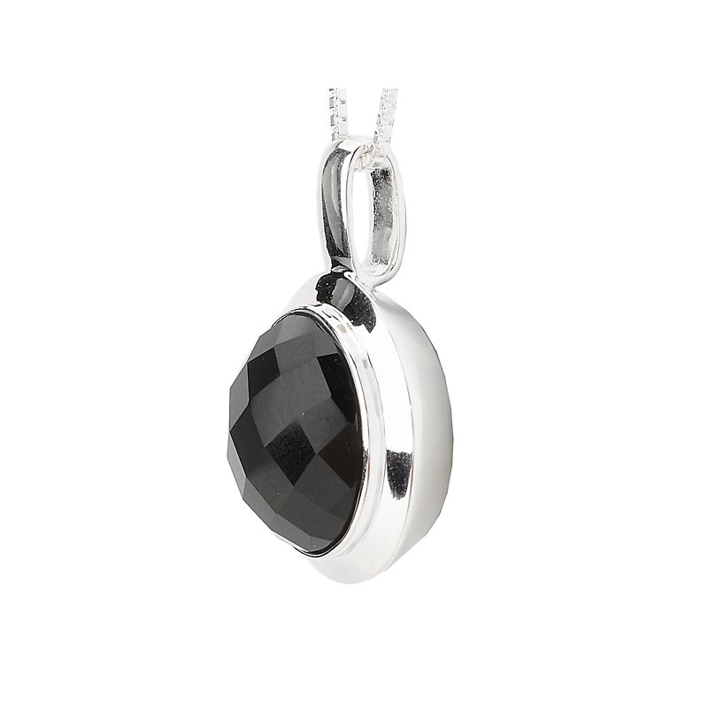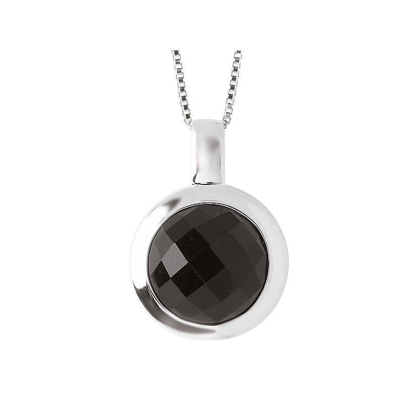 Sterling Silver Pendant with a Rounded Faceted Bezel 12mm Black Onyx in Center. (BO 4.41 carat total weight) Chain shown is sold separately