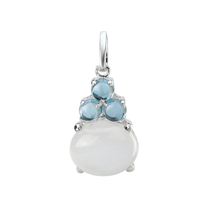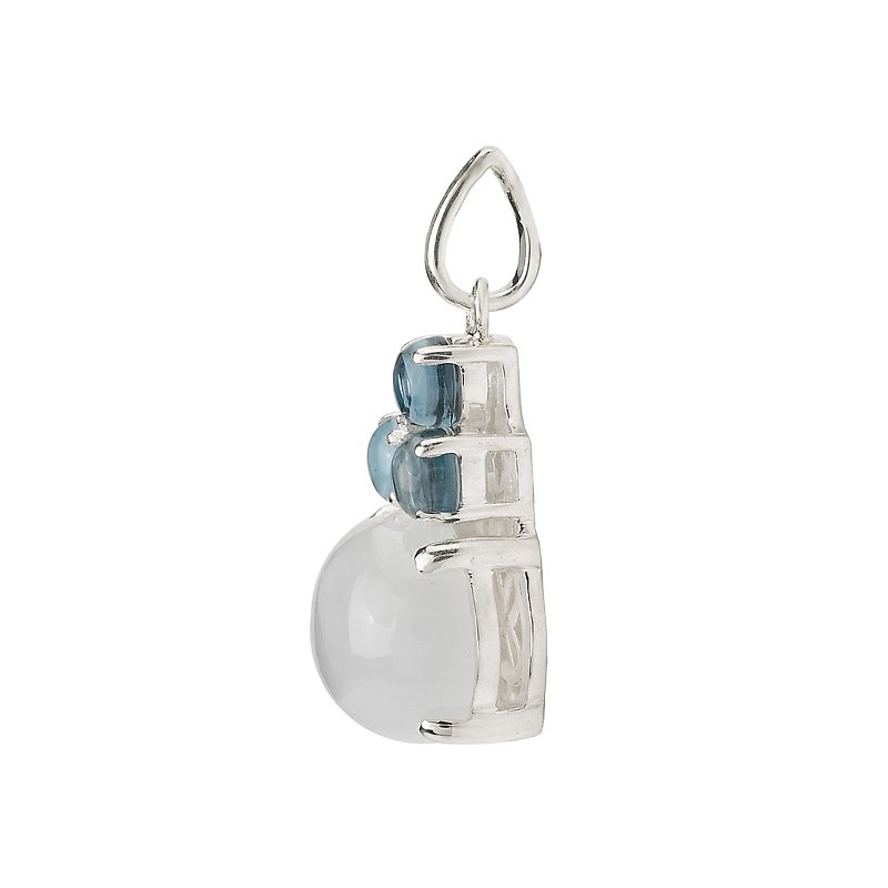 Oval Shaped White Moonstone and Round London Blue Topaz Pendant in Sterling Silver. (WM 4.79cw, L-BT .99cw)