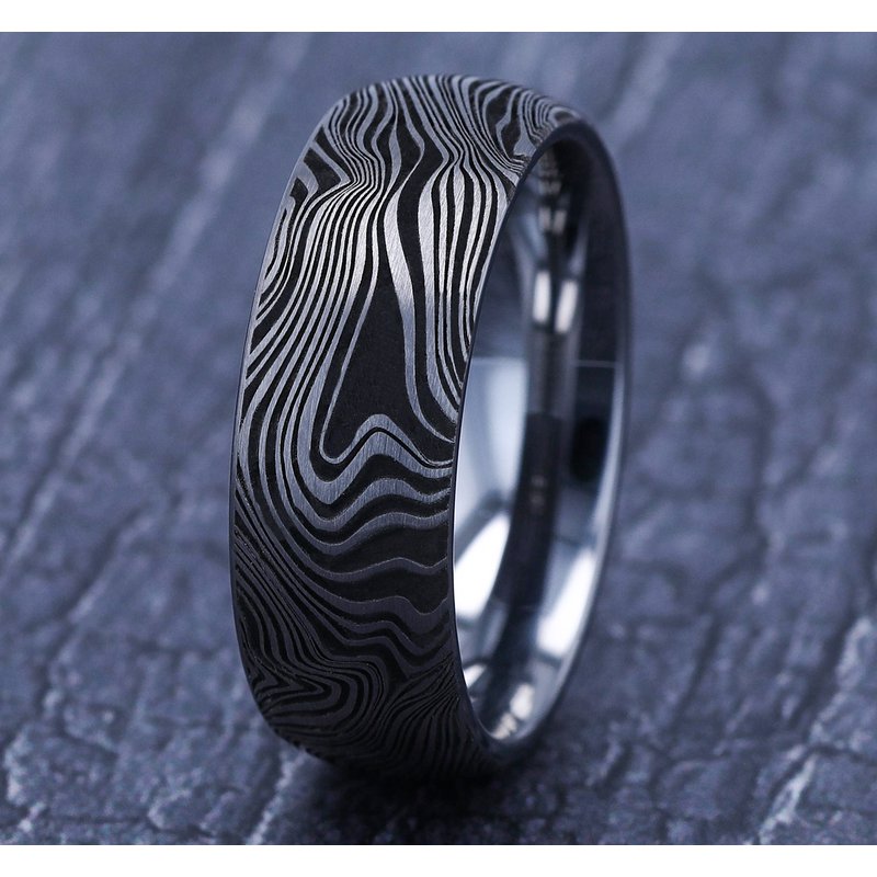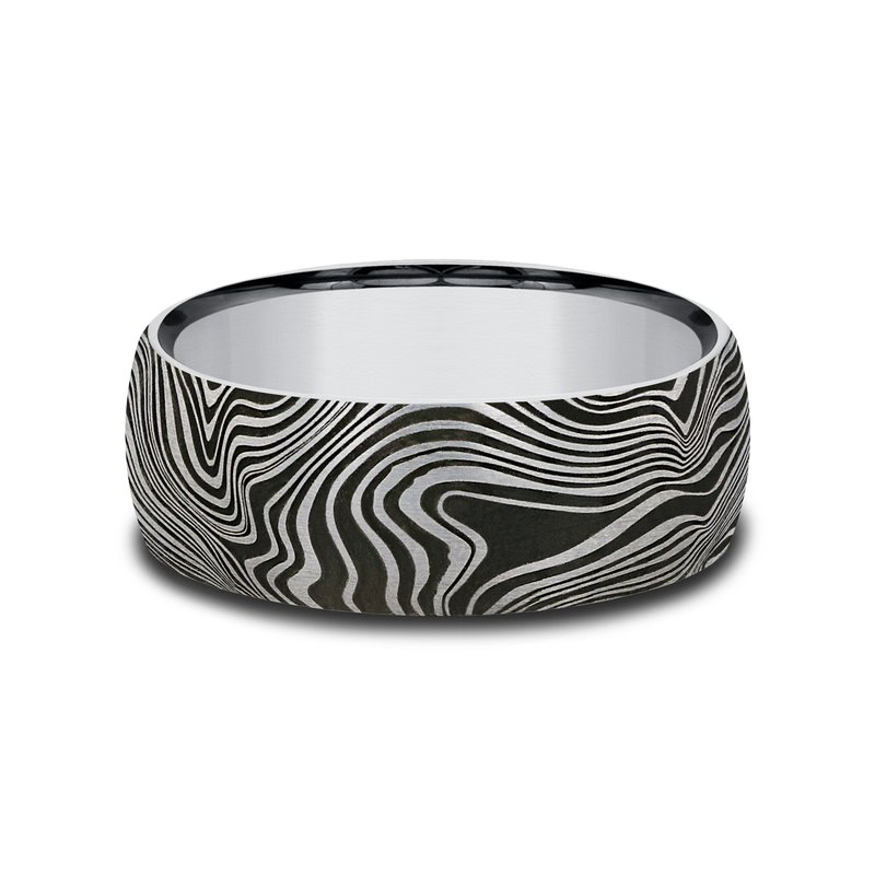 8mm, Comfort fit Tungsten Marble pattern