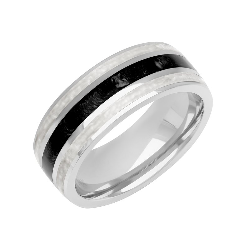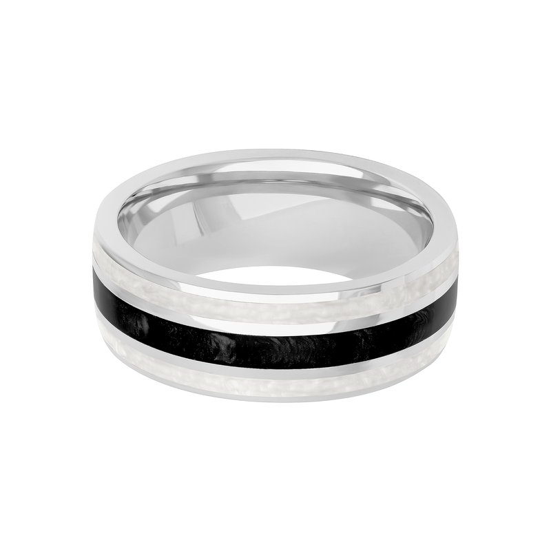 8MM Dome Tri Color Edge to Edge with Ceram8 Inlay Wedding Band