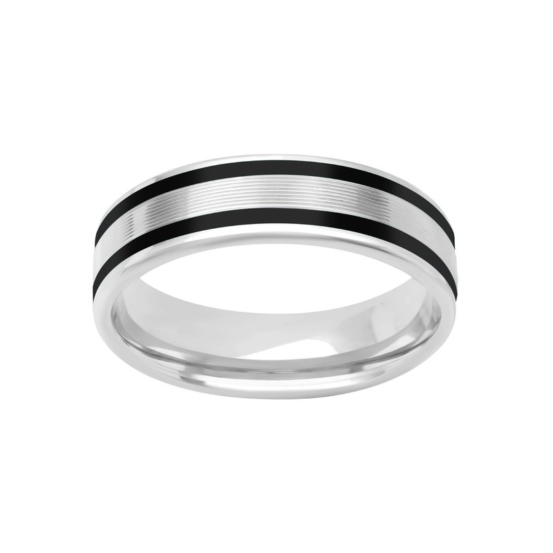 6MM Ceram8 Double Stripe Inlay with Flat Serrated Center Wedding Band