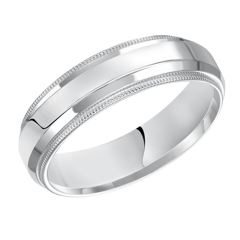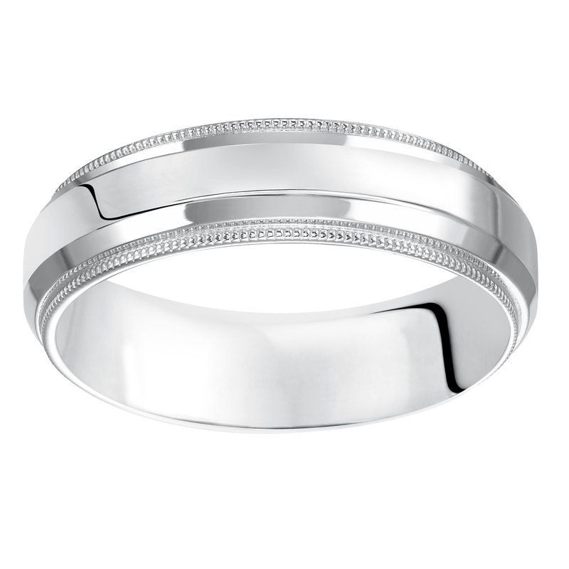 Classic lines inspired this sleek, low-domed, Comfort Fit wedding band enhanced with bright polished finish, milgrain and round edges