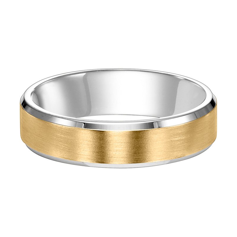 This crisp yet timeless, Comfort Fit wedding features a brushed finish with beveled edge