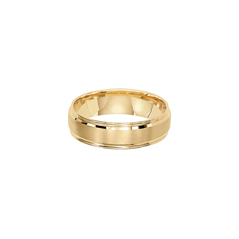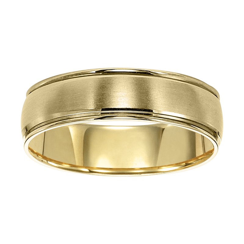 This low-domed style Comfort Fit gold wedding band is enhanced with a brushed finish and round edges for a spectacular look