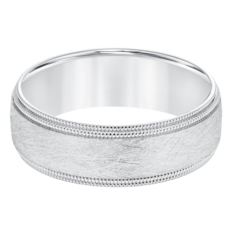 7MM Wedding Band with Crystalline Finish, Double Edge Milgrain and Dome Profile