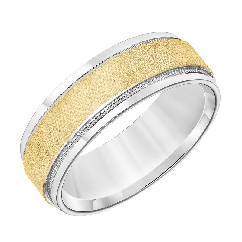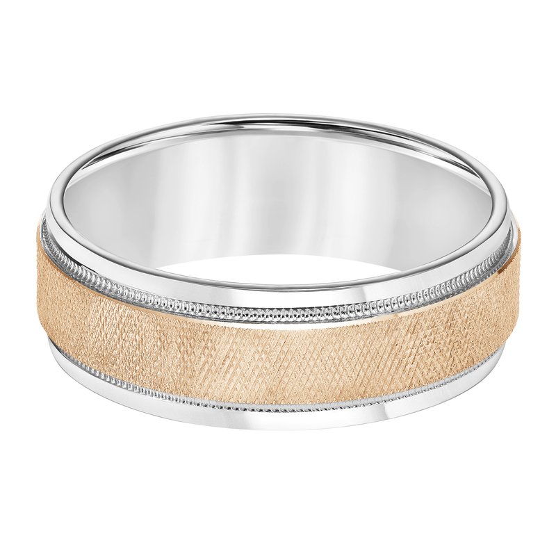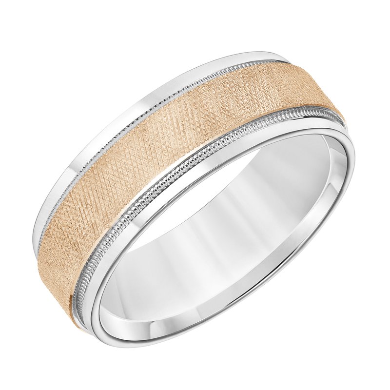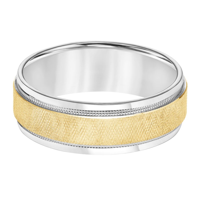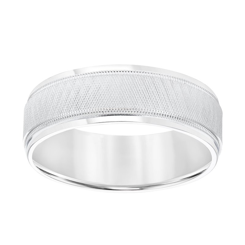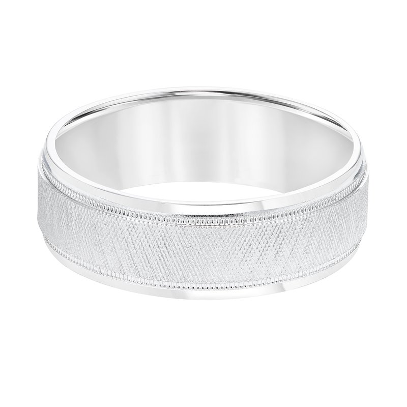 7MM Wedding Band with Knurling Finish, Milgrain Details and Bright Finished Edges