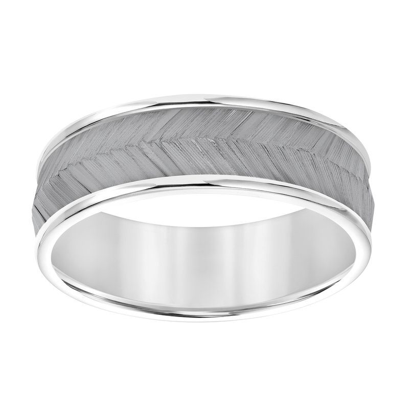Ladies Band with Black Rodium Center with Chevron Texture and Bright Round Edge