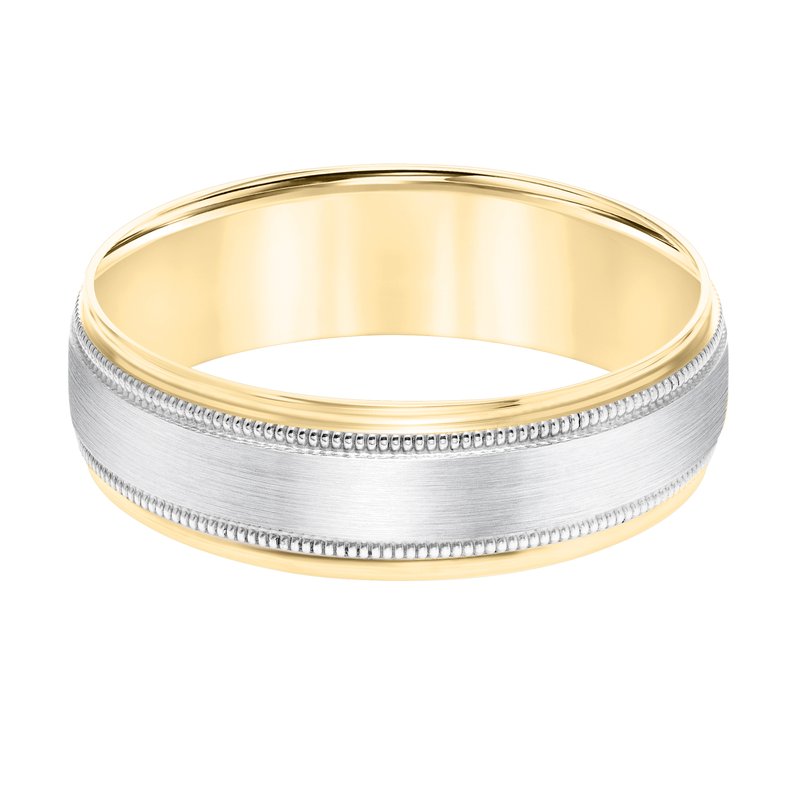 Mens Comfort Fit Wedding Band with Brush Center and Milgrain Accents and Polished Round Edge