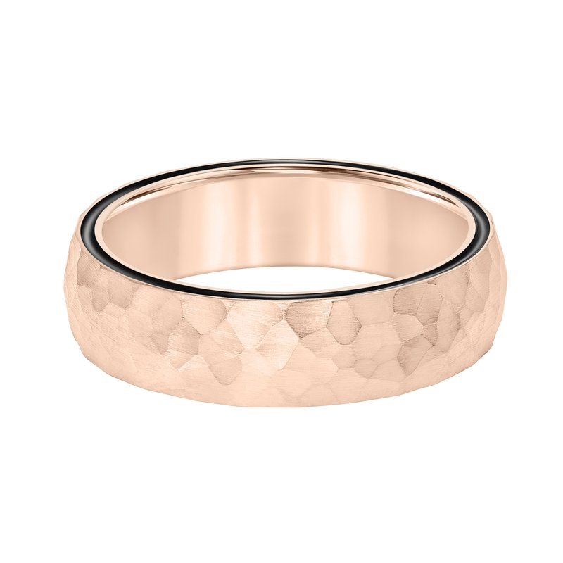 6MM 14K Gold Wedding Band with Hammer Finish and Black Enamel Sidewall