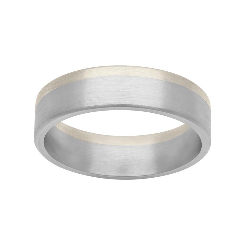 6MM Platinum & 14K Rose Gold with Asymmetrical Inlay and Flat Edge Fusion Band