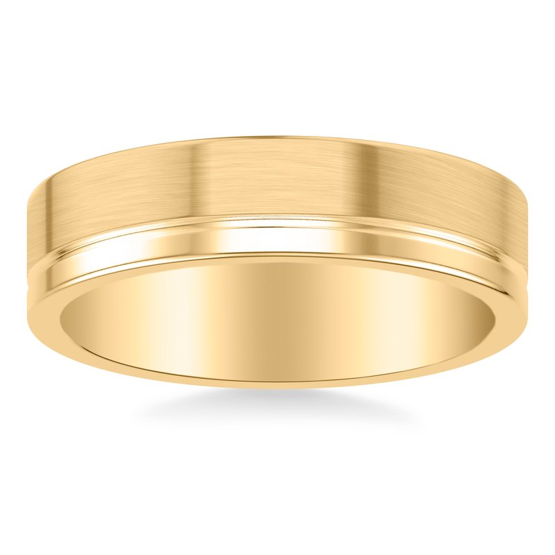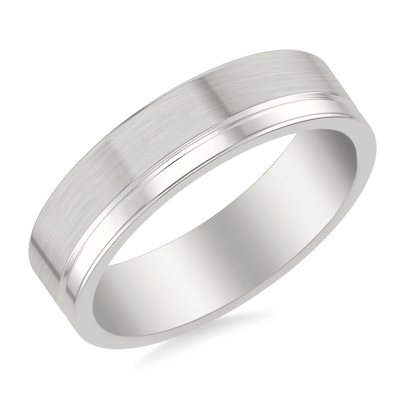 6MM Band with Asymmetrical Polished and Brushed Finishes Separated by Horizontal Groove and Flat Top & Flat Edge Profile