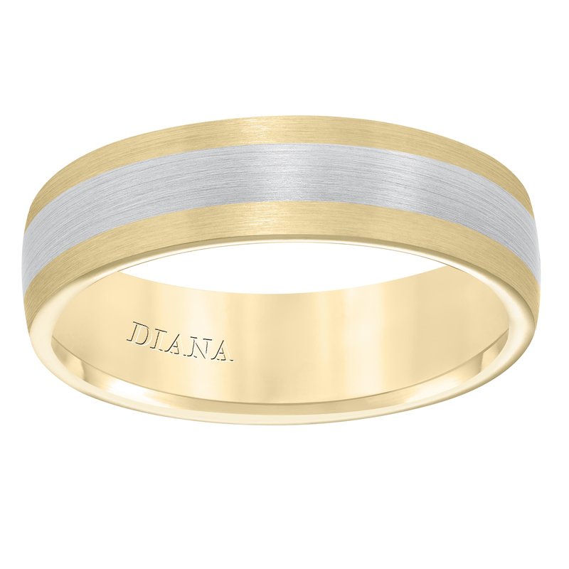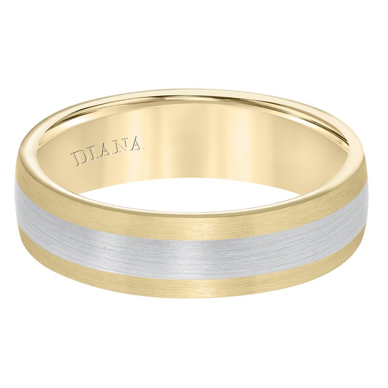 Men's wedding band with seamless two tone satin finish with dome profile