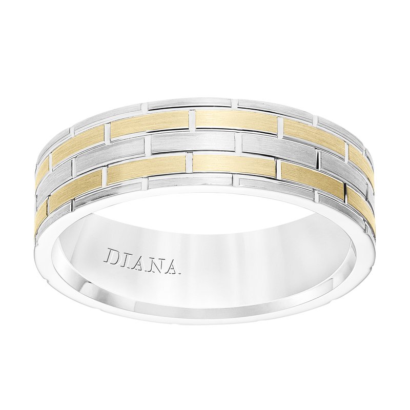 Ladies Band with Satin Finish Brick Design and Flat Edge