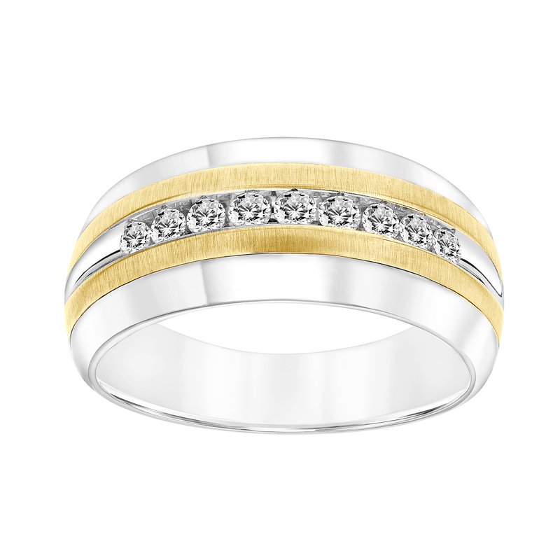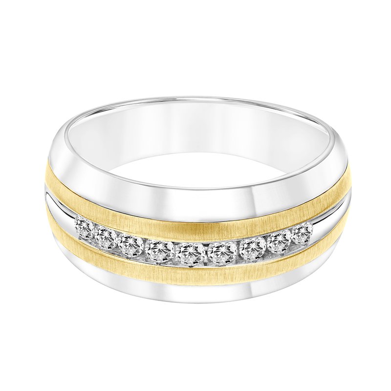 Tapered Profile Men's Band with Front Channel Set Diamonds with Satin Finish and High Polished Edge