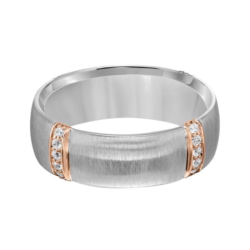 7MM Wedding Band with Vertical Brushed Finish, Diamond Vertical Stations and Dome Profile