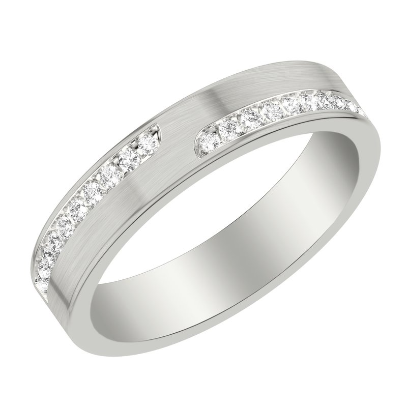 5MM Asymmetrical Diamond Channel Set Band with Brushed Finish and Flat Round Edge Profile