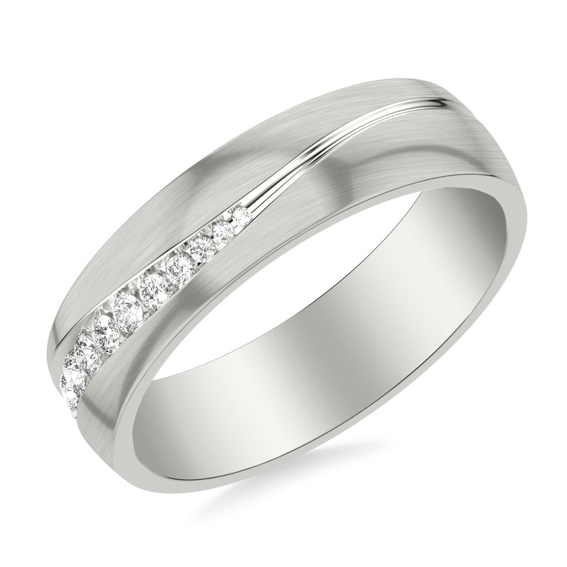 6MM Band with Wave Diamond Channel Set Groove Separating Brushed and Soft Sand Finishes with Low Dome Profile