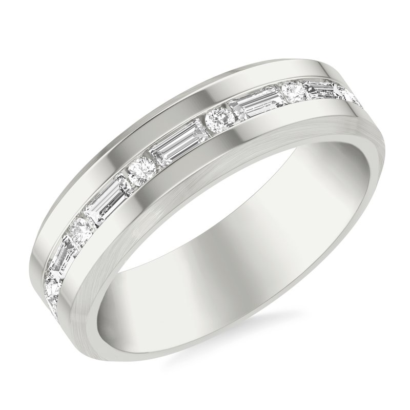 6MM Modernist Diamond Collection Band with Alternating Channel Set Baguette & Round Diamonds with Brush Center & Polished Finish Beveled Edge Profile