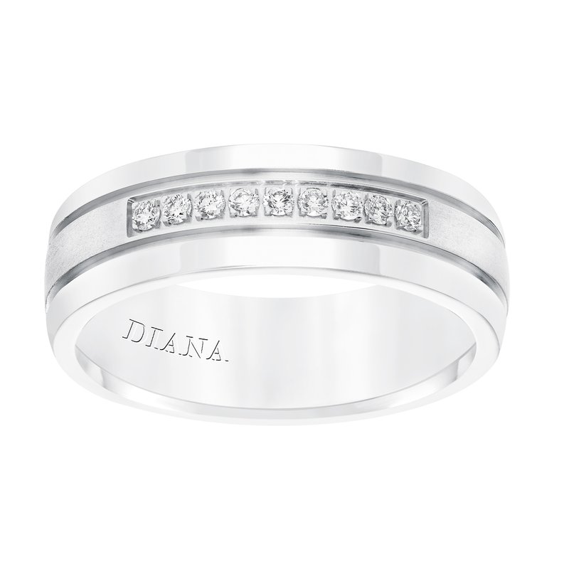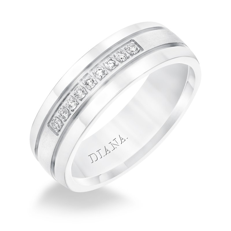 Men's diamond wedding band with satin finish, and low dome with flat edges.