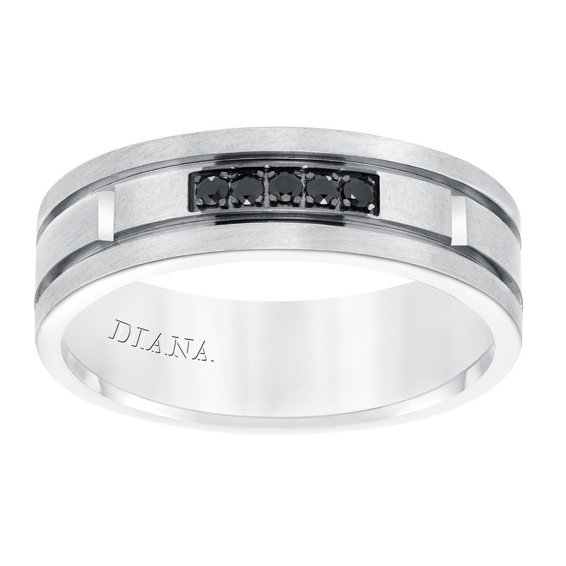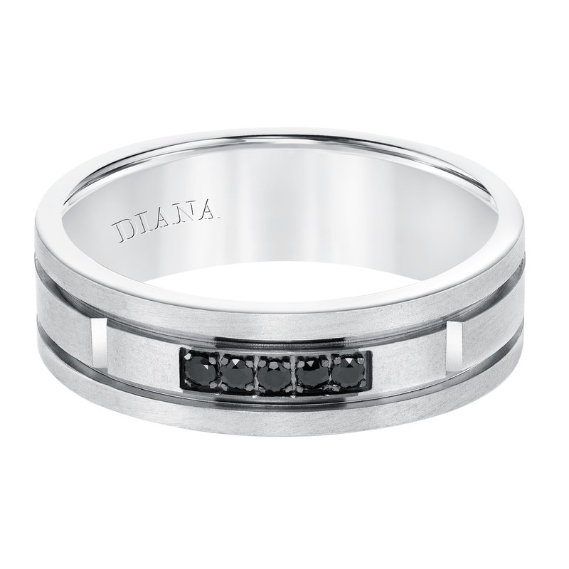 Men's diamond wedding band with satin finish, and flat profile with flat edges.