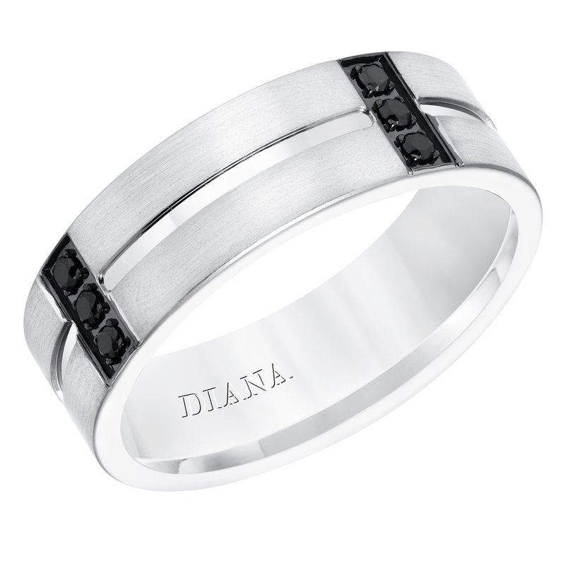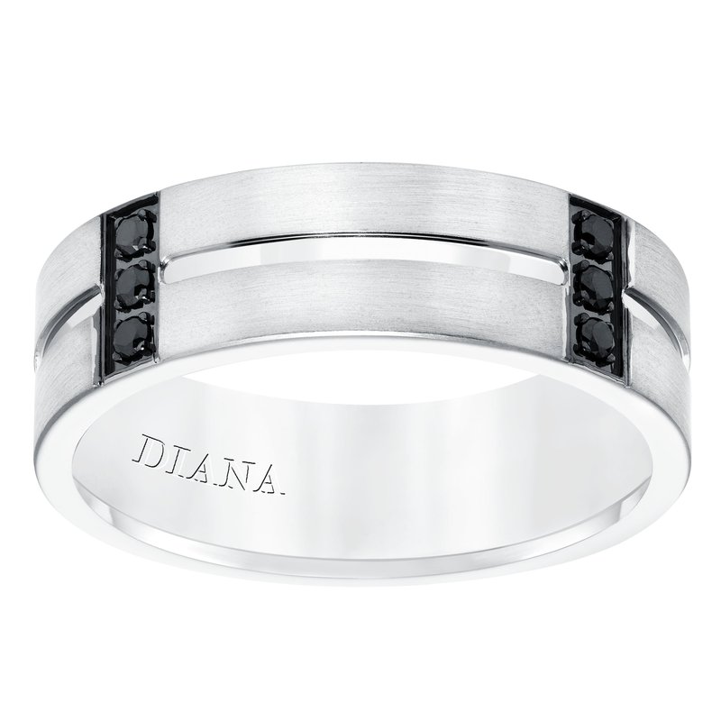 Men's diamond wedding band with satin finish, and low dome with flat edges.