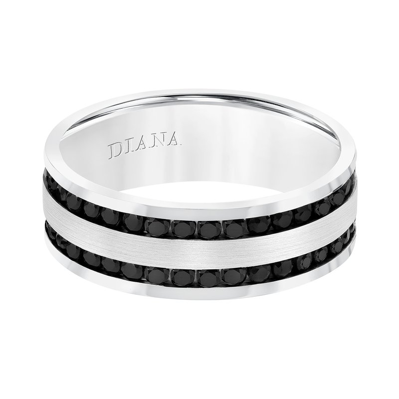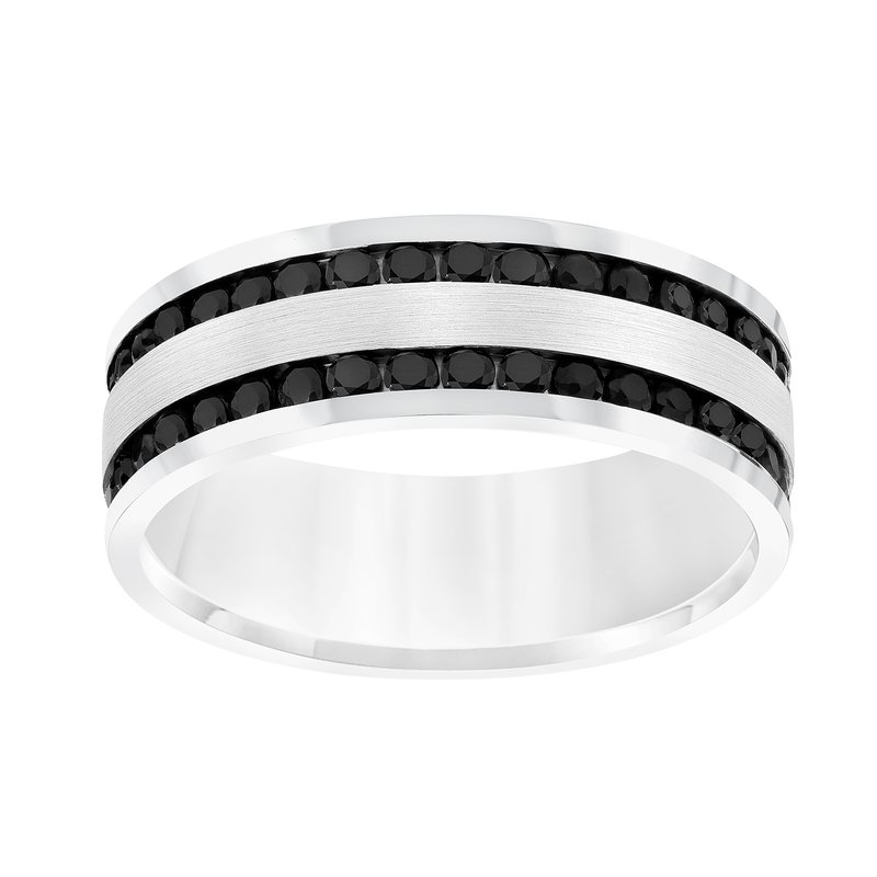 Men's Band with Double Row All Around Black Sapphires with Brushed Finish Center and High Polish Flat Edge