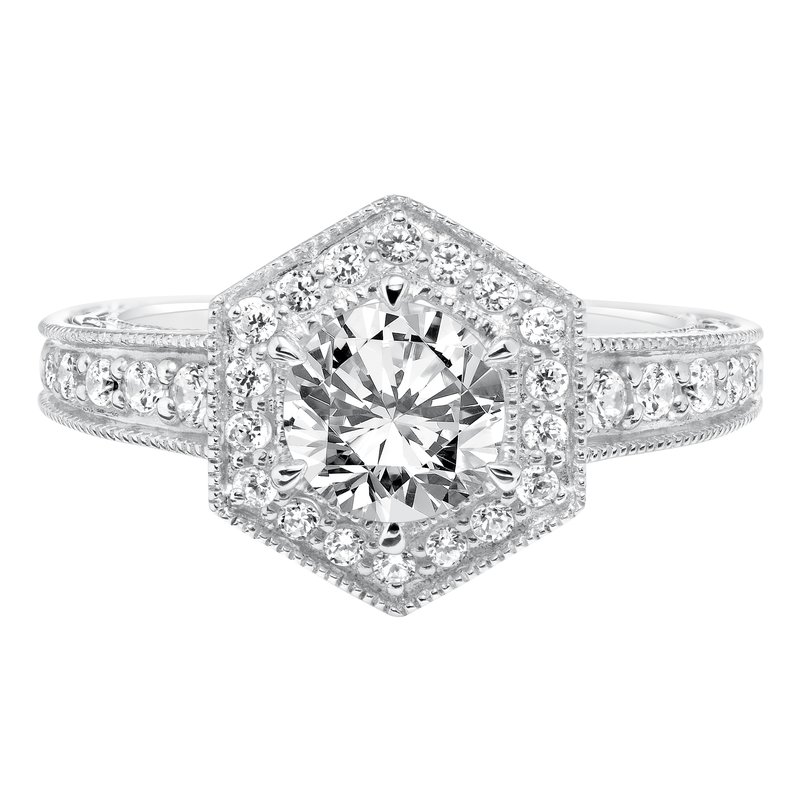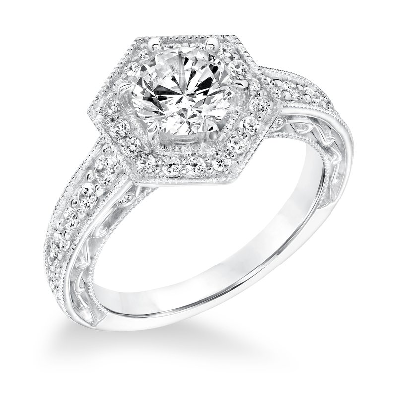 Contemporary Diamond Halo with Filigree Accents and Milgrain Engagement Ring