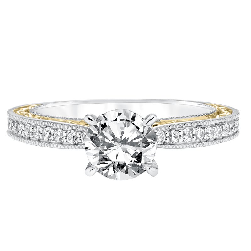 Vintage Diamond Filigree Accents and Milgrain Engagement Ring