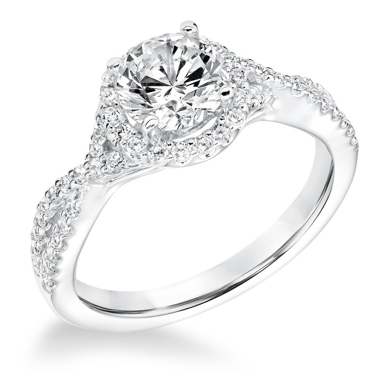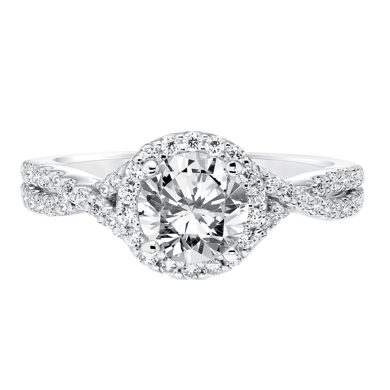 Contemporary Diamond Halo With Split Shank Engagement Ring