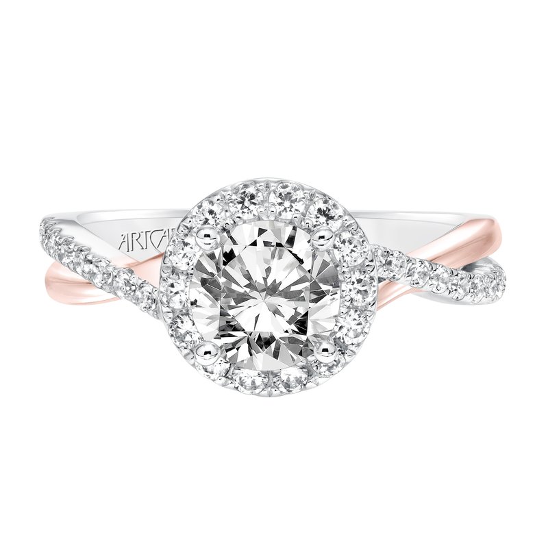 Contemporary Diamond Halo with Split Shank Engagement Ring