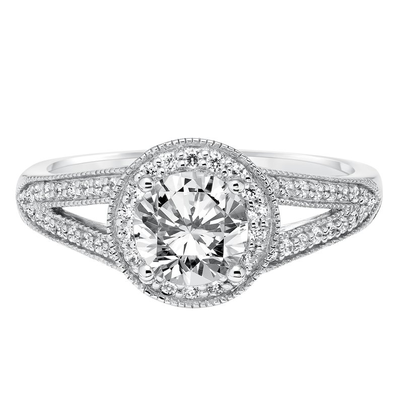 Vintage Diamond Halo Split Shank With Milgrain Engagement Ring