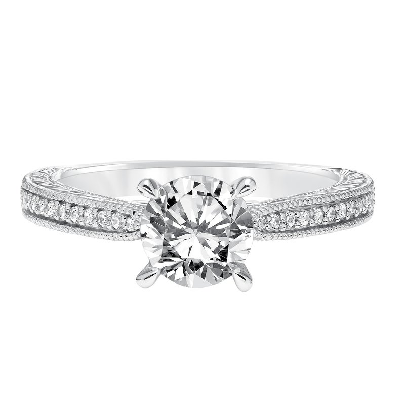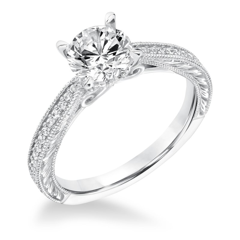 Vintage Diamond Engraved and Milgrain Engagement Ring