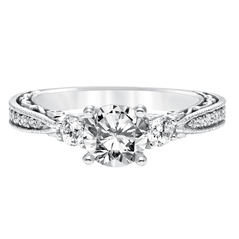 Vintage Three Stone Diamond with Filgree Accents Engagement Ring