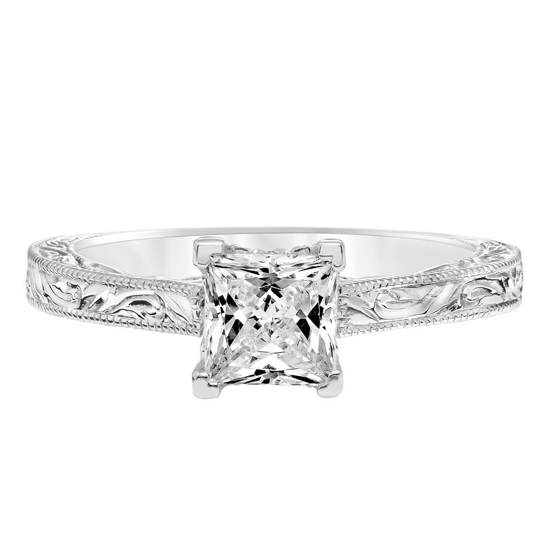 Vintage Diamond Engraved and Milgrain with Surprise Diamonds Engagement Ring