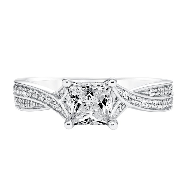 Diamond Prong Set Engagement Ring With Twisted Daimond Shank