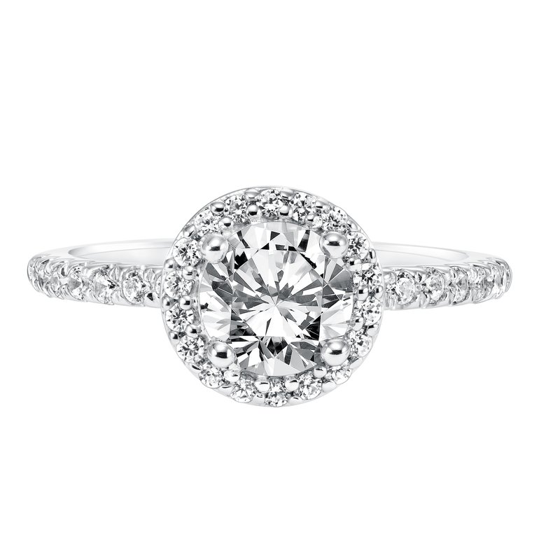 Diamond Prong Set Halo Engagement Ring with Diamond Shank