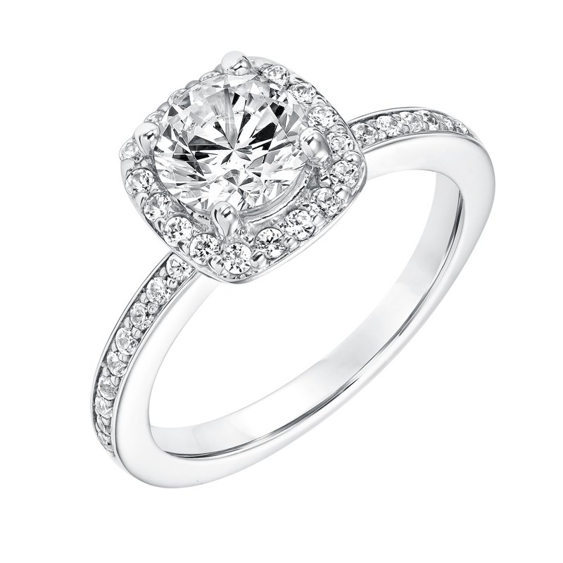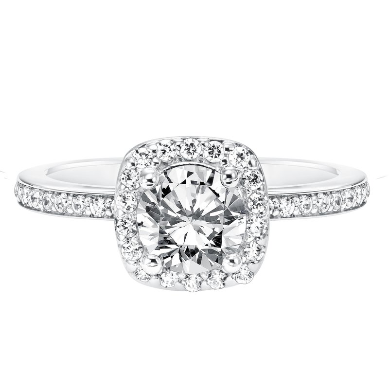Diamond Prong Set Halo Engagement Ring with Diamond Shank