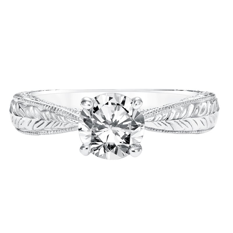 Diamond Solitaire Engagement Ring with Engraved Shank and Milgrain Detail
