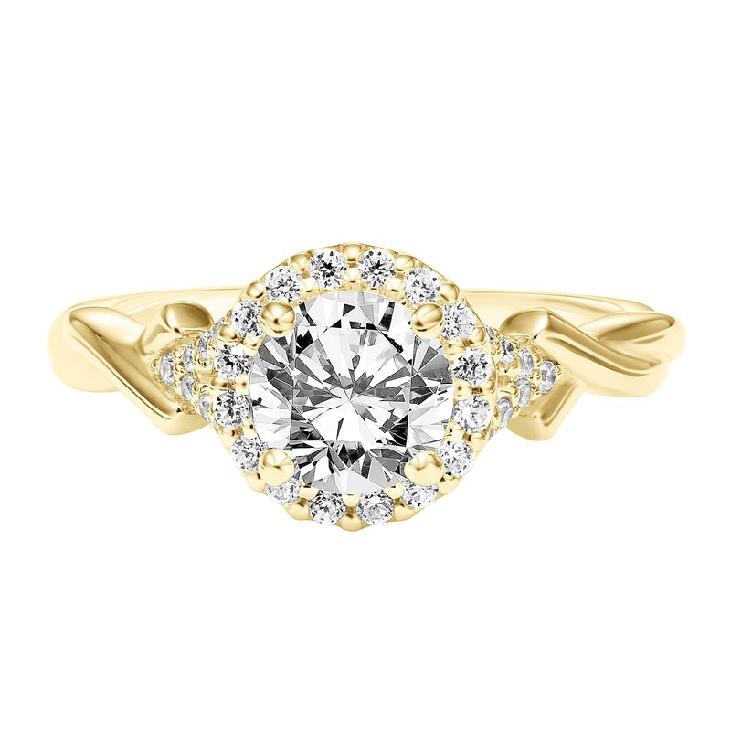 Diamond Halo Engagement Ring with Twisted Polished Shank with Diamond Accent
