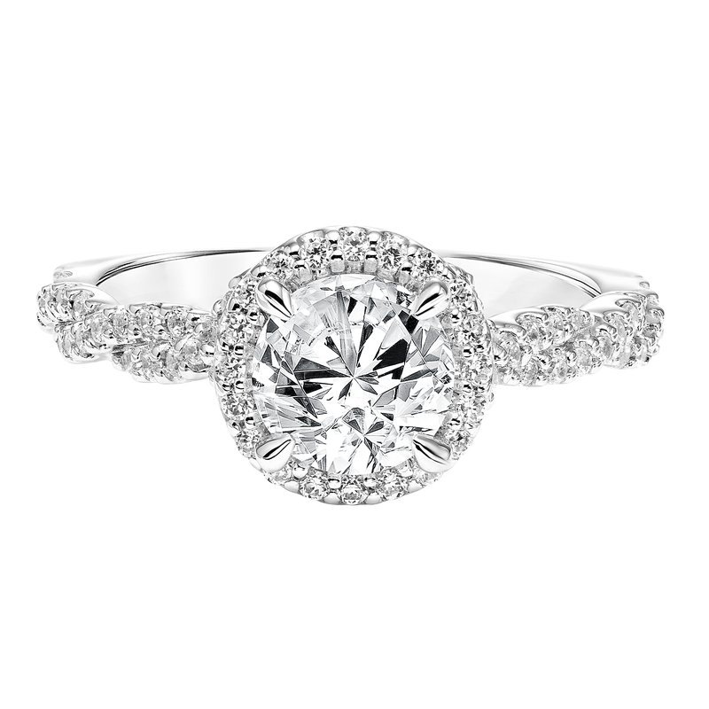 Diamond Halo Engagement Ring with Twisted Diamond Shank