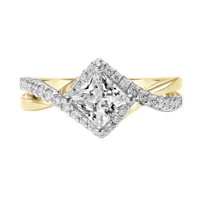 Diamond Prong Set Engagement Ring with Twisted Polished and Diamond Shank