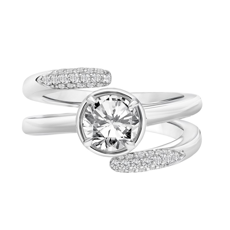 Wrap Polished Shank with Pave Diamond Tips with Bezel Set Diamond Center