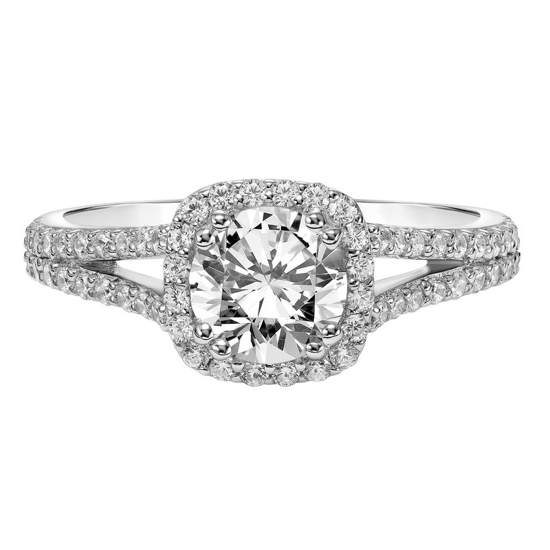 Diamond Halo Engagement Ring with Split Diamond Shank