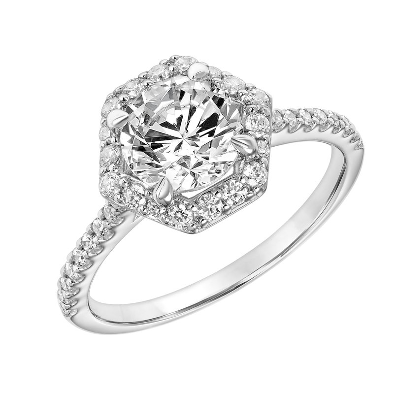 Contemporary Hexagon Halo Diamond Engagement Ring
