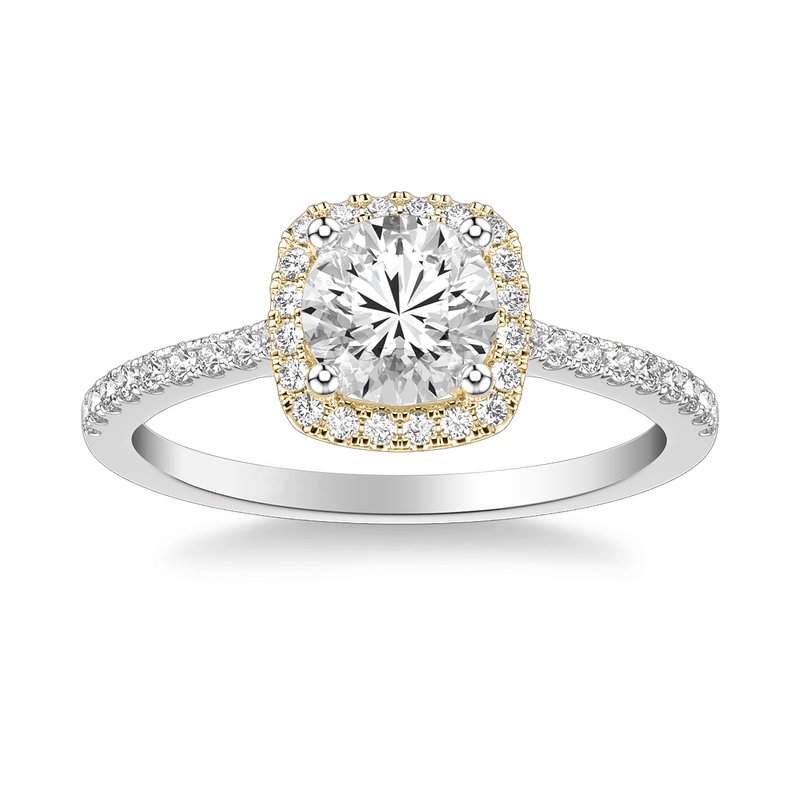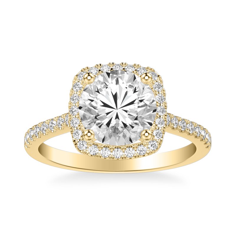 Classic Round Diamond Halo Engagement Ring with Diamond Shank