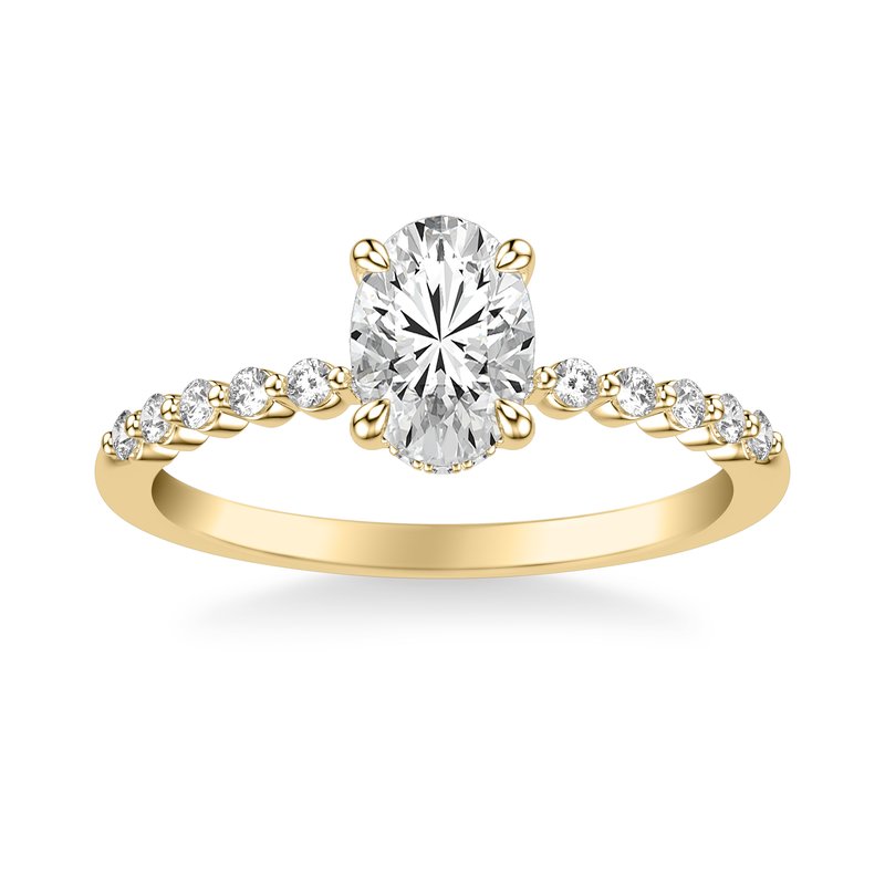 Classic Engagement Ring with Hidden Diamond Halo and Single Shared Prong Diamond Shank